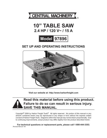 Read Online Central Machinery Table Saw Manual PDF